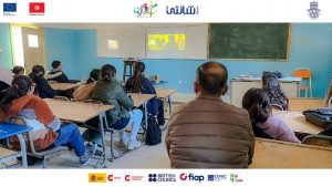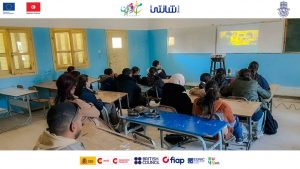 مراحل التكوين السينمائي الذي قامت به جمعية الأصالة للسياحة الثقافية والتراث بالمهدية لفائدة المدرسة الإعدادية بسيدي علوان .المدارس الاعدادية الشابة والغضابنة وبرج عريف ولاية المهدية وذلك في إطار تنفيذ مبادرة « سيني ابداع » بدعم من « مغرومين » بالـتعاون مع جمعية شانتي في إطار برنامج مغرومين FOCUS